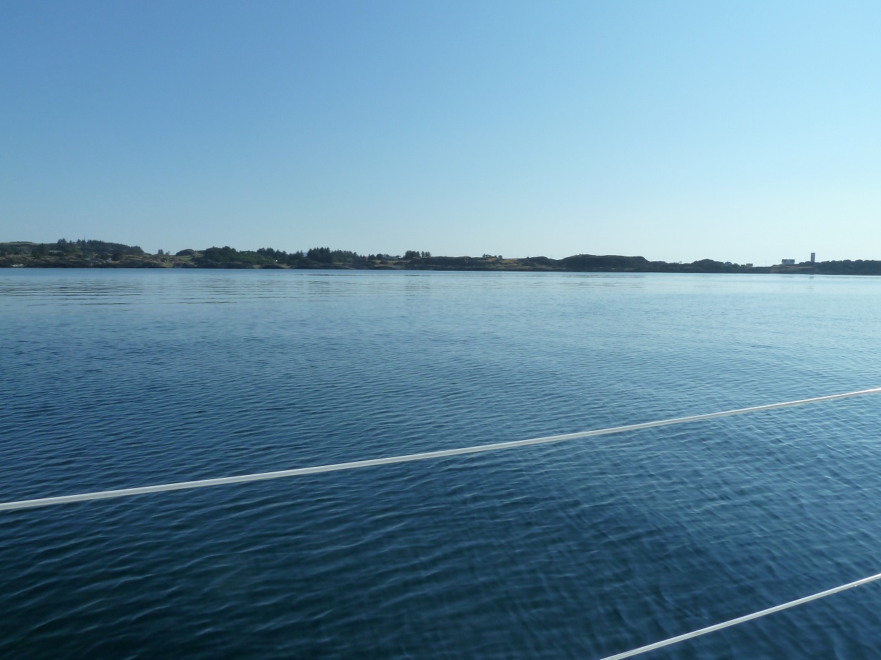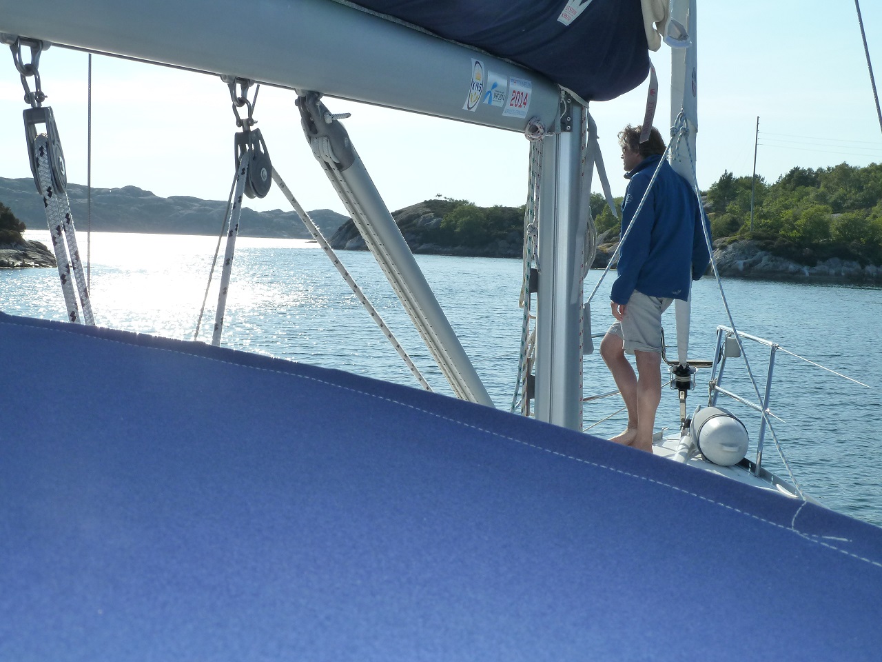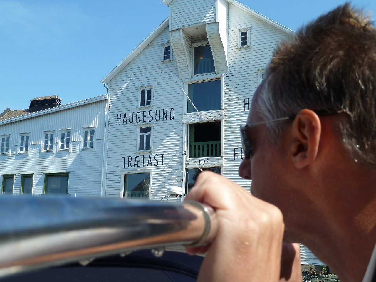 Vi forlot vakre Skudeneshavn i morgentimene og tok fatt på seilasens hittil lengste etappe – retning Bergen. I utseilingen hilste vi på Christian Radich – hvor mannskap dinglet med benene høyt oppe i mastene – ikke noen jobb for de med høydeskrekk :). Nok en gang møtte vi blikkstille hav og varm fønvind på vår vei mot Haugesund. Vi seilet gjennom holmer og skjær, flotte hytter og tung industri etter hvert som vi beveget oss langs Karmøy mot Haugesund… Oljeindustrien merkes godt. Så – på tur ut i Nordsjøen igjen fikk vi skikkelig seilvind. Av med motoren – seilene gjorde jobben! Med godt driv beveget vi oss inn utløpet av Hardangerfjorden. Heretter snek vi oss inn i fjordarmer, noen ganger trangt og uoversiktlig, men desto mer fantastisk opplevelse . I sene kveldstimer ankom vi Bergen seilforening hvor Torvald tok i mot oss med ankervin – koselig!
