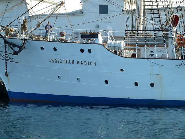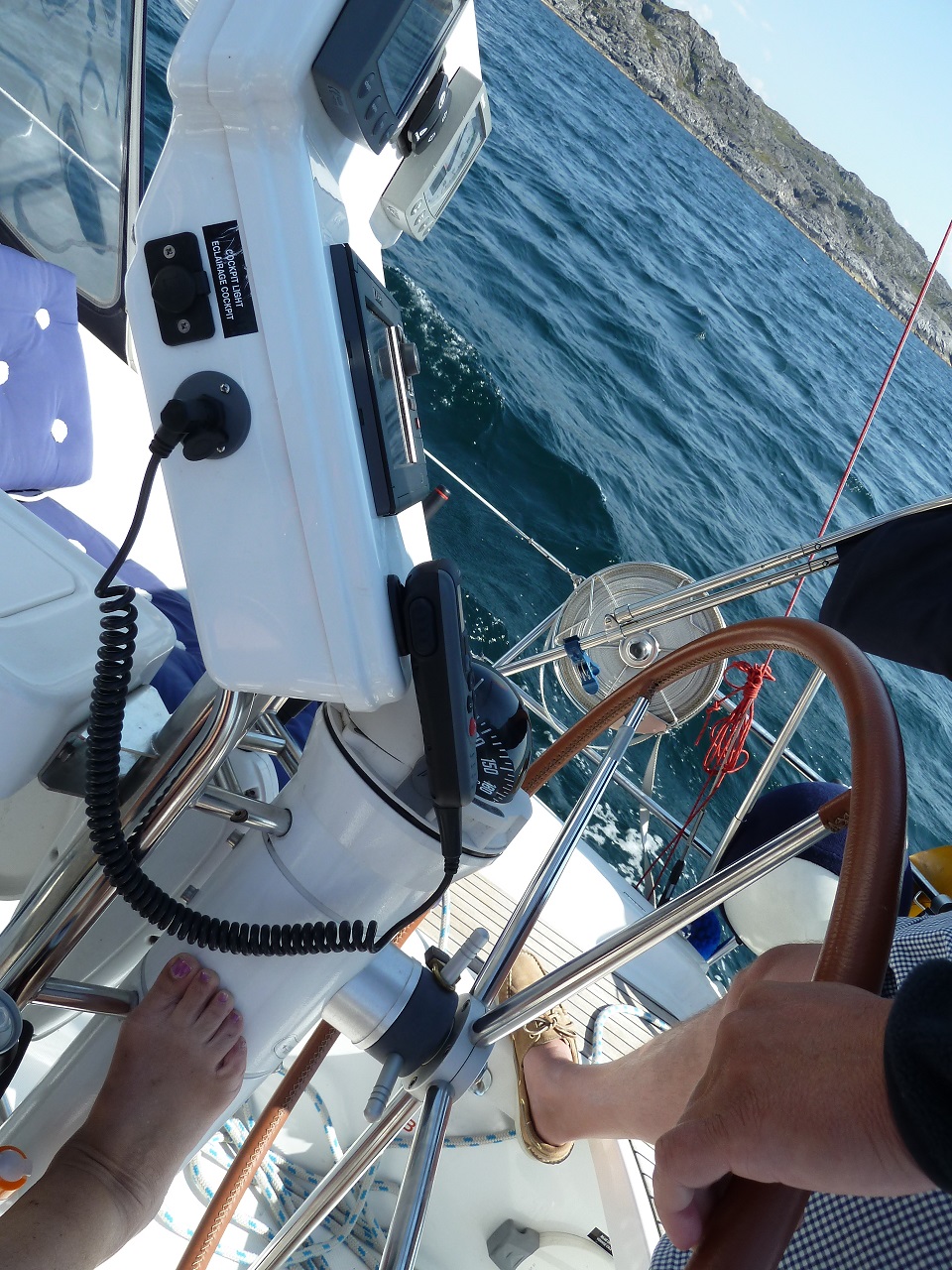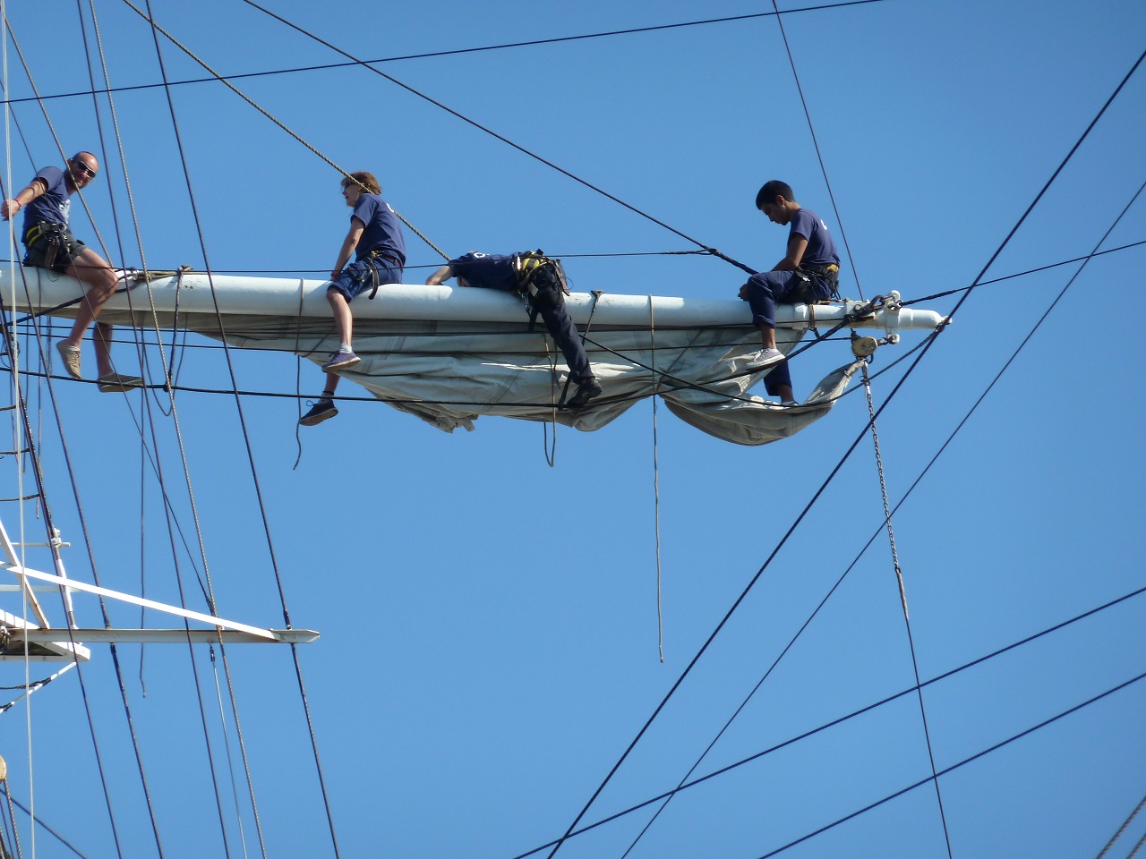 Vi forlot vakre Skudeneshavn i morgentimene og tok fatt på seilasens hittil lengste etappe – retning Bergen. I utseilingen hilste vi på Christian Radich – hvor mannskap dinglet med benene høyt oppe i mastene – ikke noen jobb for de med høydeskrekk :). Nok en gang møtte vi blikkstille hav og varm fønvind på vår vei mot Haugesund. Vi seilet gjennom holmer og skjær, flotte hytter og tung industri etter hvert som vi beveget oss langs Karmøy mot Haugesund… Oljeindustrien merkes godt. Så – på tur ut i Nordsjøen igjen fikk vi skikkelig seilvind. Av med motoren – seilene gjorde jobben! Med godt driv beveget vi oss inn utløpet av Hardangerfjorden. Heretter snek vi oss inn i fjordarmer, noen ganger trangt og uoversiktlig, men desto mer fantastisk opplevelse . I sene kveldstimer ankom vi Bergen seilforening hvor Torvald tok i mot oss med ankervin – koselig!