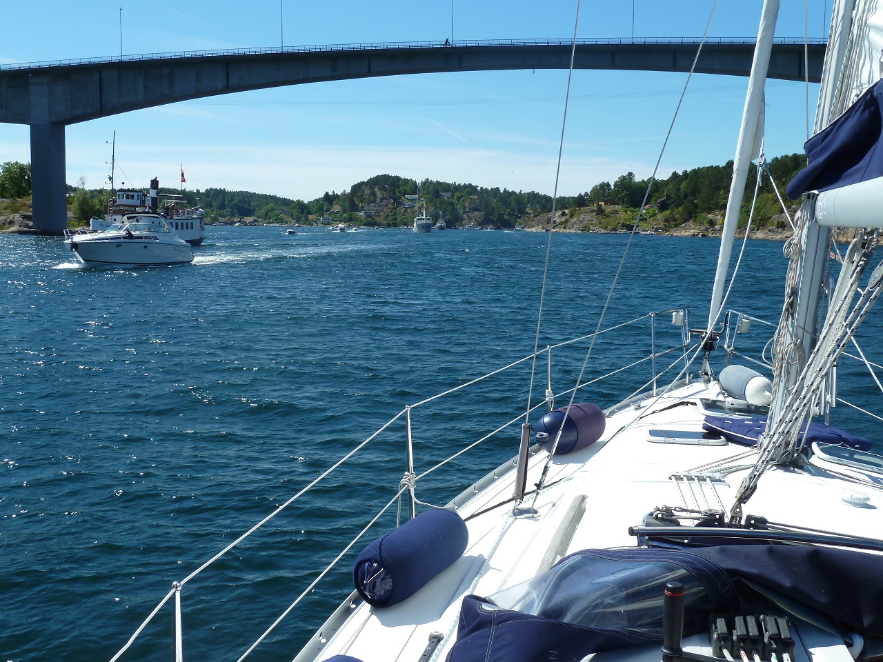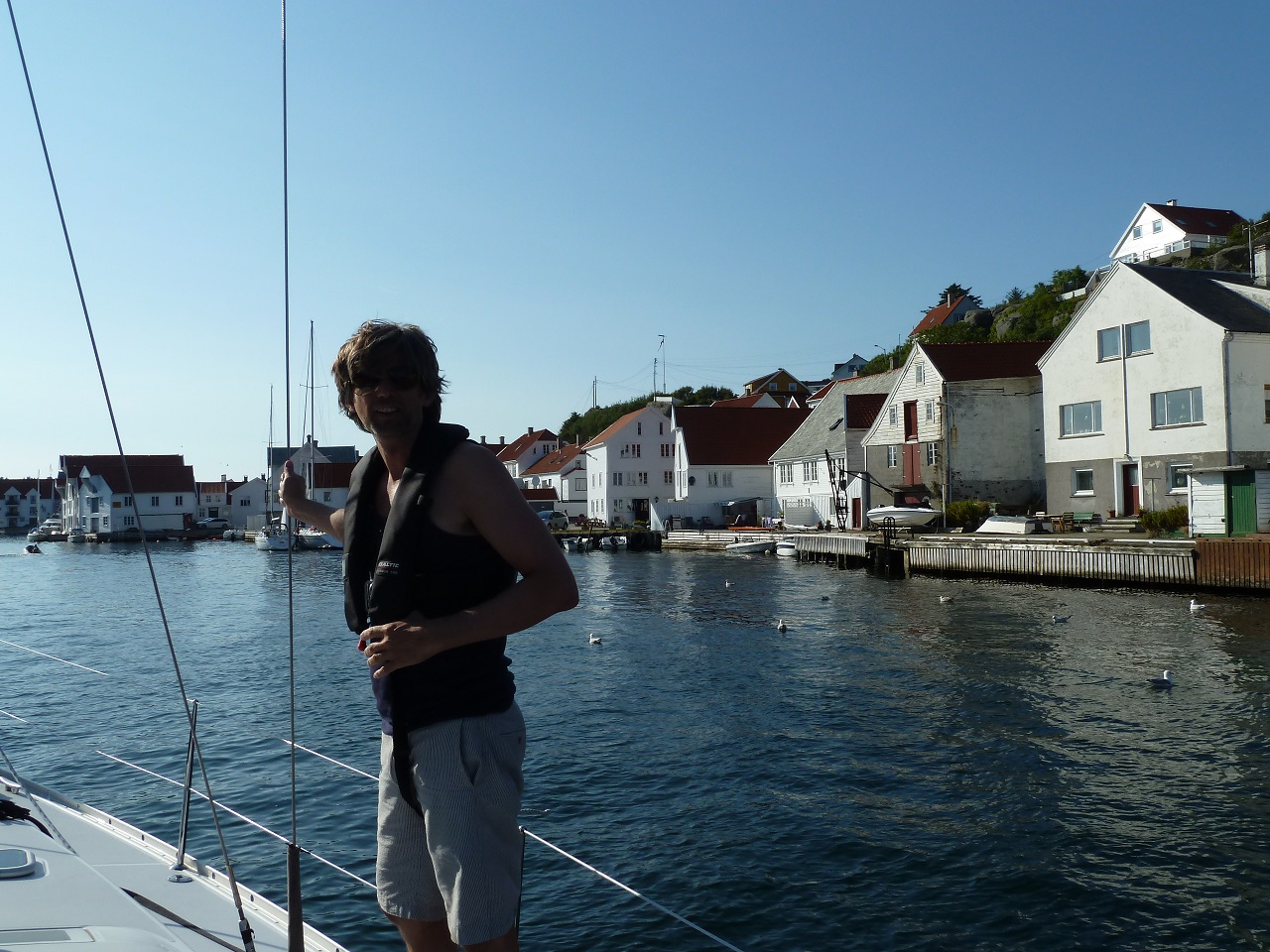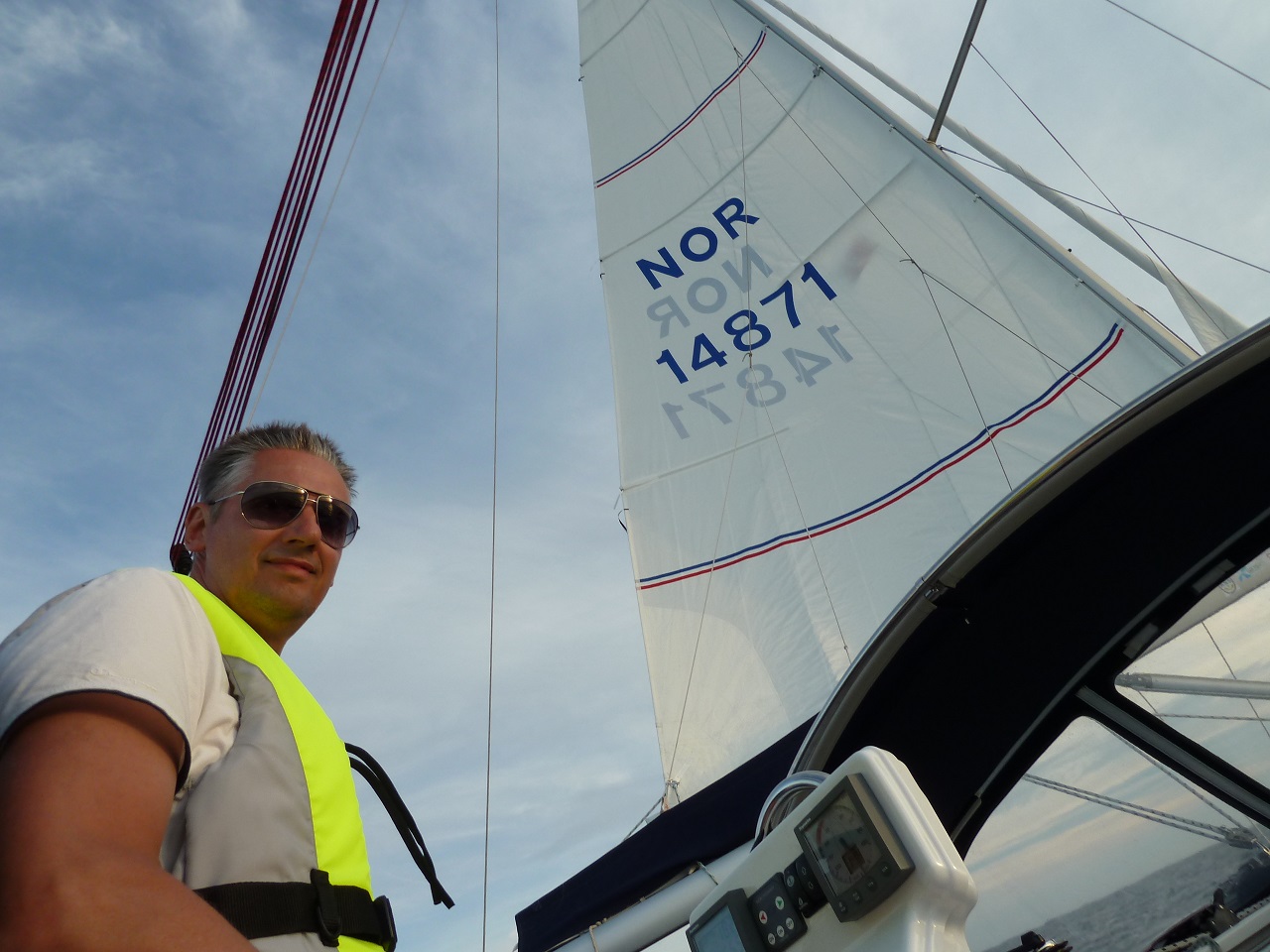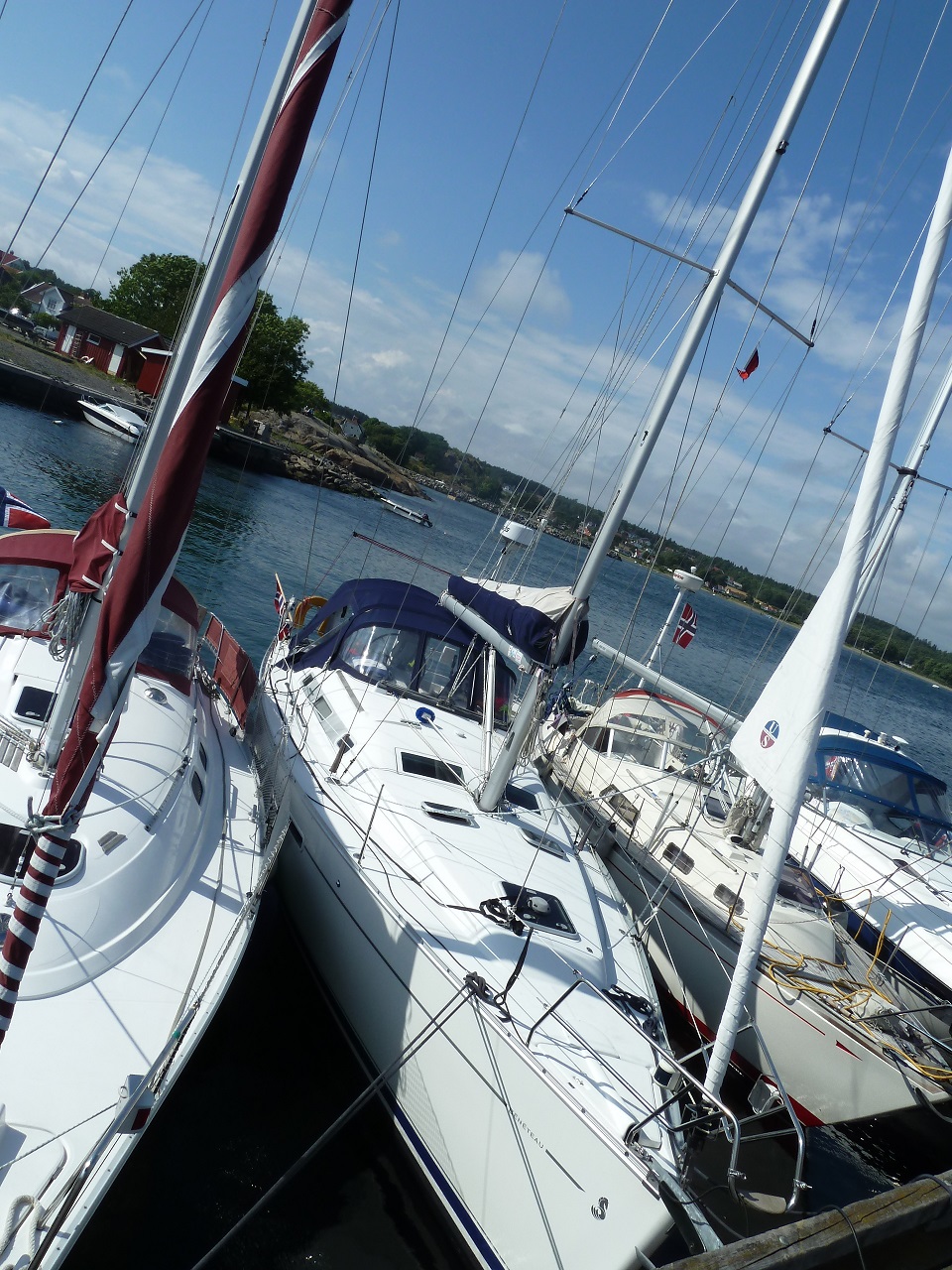 Vi forlot vakre Skudeneshavn i morgentimene og tok fatt på seilasens hittil lengste etappe – retning Bergen. I utseilingen hilste vi på Christian Radich – hvor mannskap dinglet med benene høyt oppe i mastene – ikke noen jobb for de med høydeskrekk :). Nok en gang møtte vi blikkstille hav og varm fønvind på vår vei mot Haugesund. Vi seilet gjennom holmer og skjær, flotte hytter og tung industri etter hvert som vi beveget oss langs Karmøy mot Haugesund… Oljeindustrien merkes godt. Så – på tur ut i Nordsjøen igjen fikk vi skikkelig seilvind. Av med motoren – seilene gjorde jobben! Med godt driv beveget vi oss inn utløpet av Hardangerfjorden. Heretter snek vi oss inn i fjordarmer, noen ganger trangt og uoversiktlig, men desto mer fantastisk opplevelse . I sene kveldstimer ankom vi Bergen seilforening hvor Torvald tok i mot oss med ankervin – koselig!